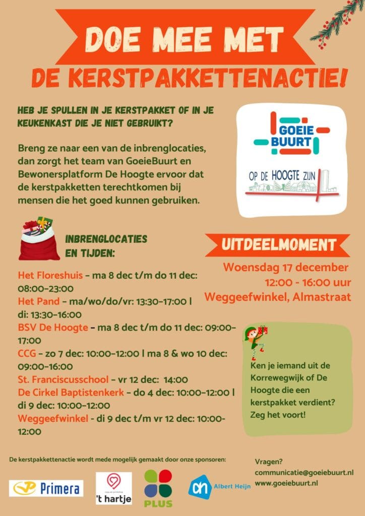 Breng ze in de periode tussen 4 en 12 december naar een van de onderstaaande inbrenglocaties, dan zorgt het team van GoeieBuurt en Bewonersplatform De Hoogte ervoor dat de kerstpakketten terechtkomen bij mensen die het goed kunnen gebruiken.